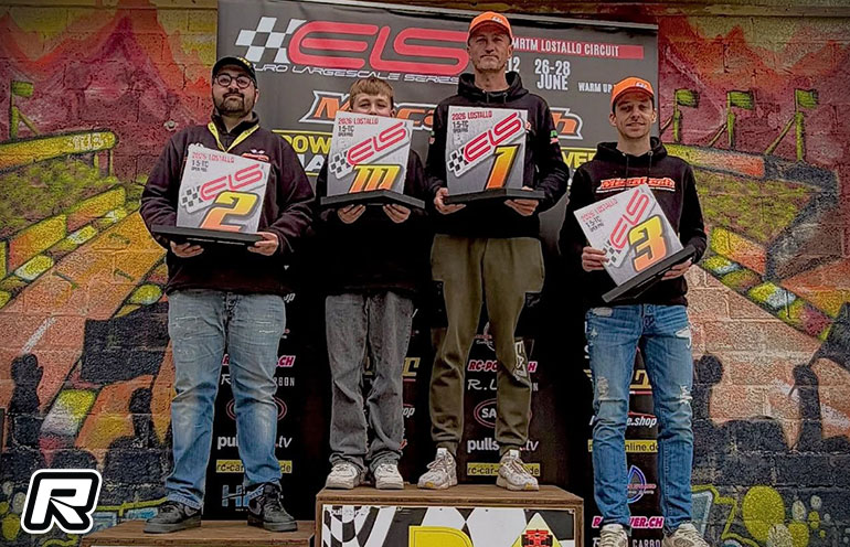 The opening round of the Euro Large Scale Series (ELS) 2026 took place at Lostallo in Switzerland over the weekend where it was reigning 1:5 Touring Car World Champion Markus Feldmann who took the win.  In qualifying it was Feldmann who took his GRP equipped Mecatech to the TQ honours and a new lap record ahead of Italian’s Emanuele D’amico and Edoardo Repetti.  In Super Pole shot out, it was D’amico who locked himself a direct spot into the half hour final.   While D’amico set the fastest lap of the final he could not deny his German rival the win, Feldmann’s advantage after 75-laps being almost 10-seconds.  With Repetti retirng from the race after 18-minutes, the podium was completed by Belgium racer Giovanni Verbrugghe who started from 10th on the grid.  Behind him reigning European Champion Carsten Keller came home in P4.  Round 2 of the Euro Large Scale Series takes place over the weekend of June 26-28, again at Lostallo, the race also serving as the official Warm-up Race for the Large Scale World Championships scheduled for August.